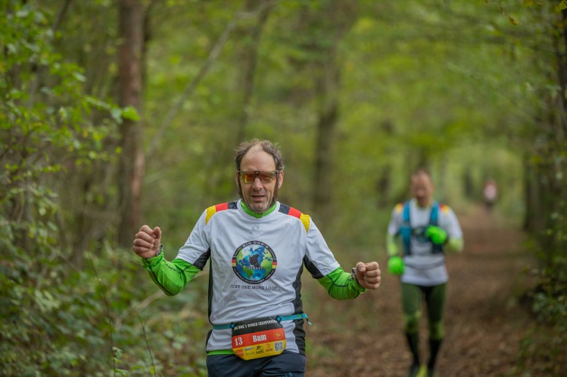 Überstanden habe ich eines dieser, nennen wir es mal „mittelmäßiges Tief“ mit Hilfe von Rene. Der Gute hatte vor 24 Stunden noch keine Ahnung der er mit dem Team Germany in Kandel um die WM-Krone mitlaufen würde. Aufgrund der kurzfristigen Absage von Jonathan der sich bei einem Sturz mit dem Rad verletzt hatte, sprang Rene für ihn ein. Riesigen Respekt für den kurzfristigen Einsatz und das obwohl er noch vor 14 Tagen 26 Stunden beim Schinder-Trail Backyard Ultra unterwegs war. Er hat gekämpft wie ein Löwe bis er nach 22 Stunden völlig erschöpft seinen Dienst für heute getan hatte. Auch Dank ihm konnte ich weiterlaufen.