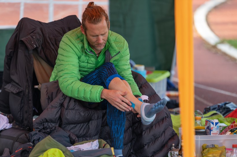 Die letzten Schritte ins Stadion waren die schwersten. Ich versuche mich unentdeckt hinter den Zelten vorbei zu unserem Pavillon zu schleichen….Ging leider nicht. Claudi hatte mit entdeckt und kam mir mit offenen Armen entgegen. Ich fiel ihr in den Arm und verdrückte erstmal ein Tränchen. Ich weiß nicht warum…traurig weil ich aufgeben musste, gleichzeitig war ich ein wenig stolz auf das Erreichte. Emotionen halt! Nachdem ich dann auch offiziell ausgestiegen war, zog ich mich um und setzte mich erstmal ne Weile in meinen Stuhl. Ich kann mich nicht erinnern mal so fertig gewesen zu sein. Eigentlich wollte ich noch bleiben um den Rest des Teams so lange wie möglich anzufeuern und zu unterstützen. Ich war jedoch nicht in der Lage.