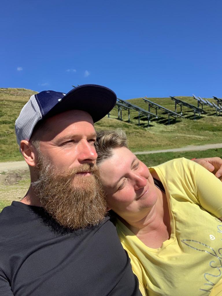 Nach kurzer Erholung und einem Energie-Gel, liefen wir weiter und genossen das tolle Panorama bei diesem Lauf…das Ganze ja inwischen zu viert. Die weiteren gemeinsamen Laufkilometer verflogen gefühlt viel zu schnell. Dennoch war uns von Beginn an klar, wir laufen keinen langweiligen Stadt-Halbmarathon ohne Blick nach links und rechts, sondern wir nehmen einen Trailrun unter die Beine. Hoch, runter, mal steinig, mal fiese Wurzeln aber dann auch wieder unfassbar tolle Aussichten auf den Berggipfeln und flowige bergab Passagen auf denen man es richtig brettern lassen konnten. Eine irreführende Abzweigung hätte uns beinahe auf die falsche Strecke geschickt aber unser starker Zusammenhalt, unsere große Liebe zueinander, Weitsicht und Vertrauen in uns beide, hat uns auch den kniffligen Moment während des Laufs überstehen lassen.